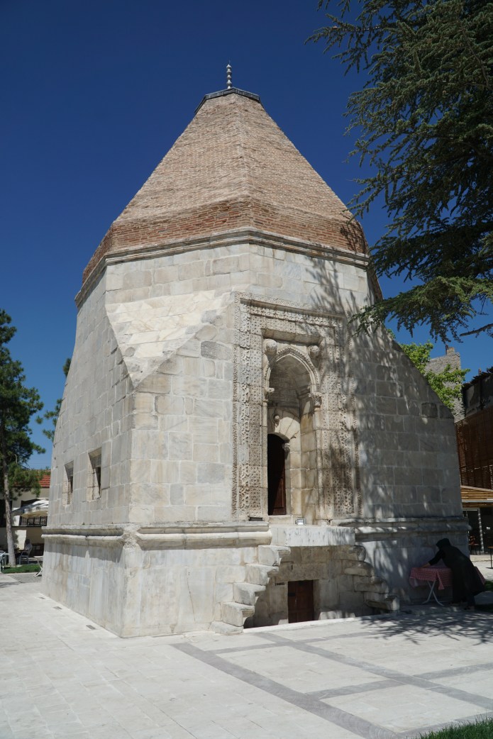 Caminin üst tarafında Alemşah Kümbeti yer alıyor. Bu kümbet, Selçuklu Sultanı Melikşah tarafından, kardeşi Sultan Alemşah’ın anısına, 1327 yılında yaptırılmış. Yapımında, Pessinus’tan getirtilen mermerler kullanılmış. Ana kapıyı çevreleyen süslemelerde, yıldız, balık, geometrik örgü gibi desenler görülmekte. Alt kat, mumyalık. Merdiven basamakları, kümbet gövdesine asılı olduğu için, havada duruyormuş hissini veriyor.