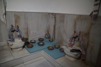 İkinci müze, Türk Hamam Müzesi. Beypazarı içinde, Taşmektep’in devamında, Alaaddin sokak üzerinde sol kolda bulunan, Selçuklu Sultanı Alaaddin Keykubat’ın Veziri Rüstem Paşa tarafından yaptırılan bu küçük hamam, 2012 yılında müze haline getirilmiş. Hamam kısmen yere gömülü, 8-10 basamakla soğukluk bölümüne iniliyor. Ortada küçük bir şadırvan var. Soyunma bölümleri, soğukluğun üst katında. Hamamların soğukluk bölümü genel olarak ahşap bir kubbedeki pencerelerden aydınlatılırken, bu hamamda pencere olmadığı gibi, ayrıca da tavan yapılmış. Soyunma bölümleri vitrin haline getirilmiş ve buralarda ”Gelin Hamamı” temasına uygun eşyalar sergileniyor. Peştemallar, ipek futalar ve havlular, hamam bohçası, bakırdan kil çantaları (sabun yokken sabun yerine), makyaj ve bakım çantaları, ipek keseler. Hamam anasına ait sedef kakmalı nalınlar. Hamam anası, hamamda düzeni sağlayan kişi. Hamama gelen kadınları sosyal statülerine göre ağırlar, yüksek konumda olanlara soyunma ve giyinmede baş köşeyi hazırlar, onların kullanacakları peştemal ve havluları özenle seçer ve hamamda hizmetten memnun bir şekilde ayrılmalarını sağlar. Tekrar hamam içine dönecek olursak, dar bir kapıdan ılıklık bölümüne geçiliyor, sonra da hararet-halvet bölümüne. Hararet bölümü üç kurnalı ve alanı küçük olduğundan göbek taşı bulunmuyor (geleneksel Türk hamamlarında göbek taşı bulunur. Külhandan bir kanalla gelen sıcak hava göbek taşının altından geçer ve göbek taşını ısıtır,dolayısıyla hamam ısınır) . Ilıklık ve hararet bölümlerinin üstü kubbeyle örtülü ve kubbedeki küçük pencereler aydınlatmayı sağlıyor. Kurnalara bakır hamam tasları konulmuş, ortasında küçük balıklar olan.