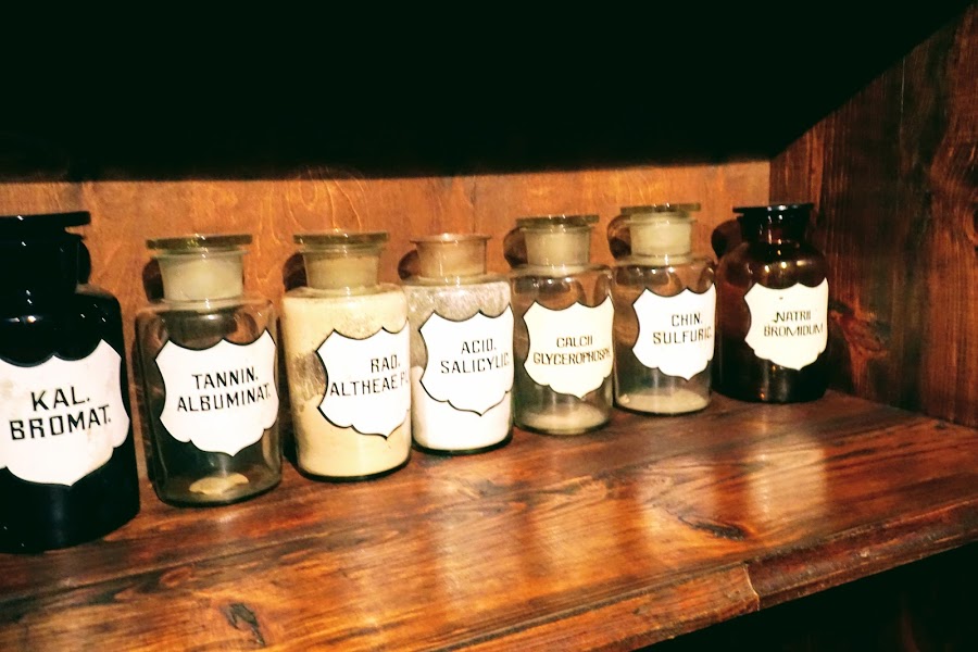 Eczacılık ile cadılık, bir dönem iç içe olmuş. Özellikle kadınlar (erkekler de), 14. ve 17. yüzyıllar arasında, geçimlerini sağlamak için; eczacılık, simyacılık, şifacılık gibi konularla uğraşmışlar. Cadılardan korkan Avrupa, bu alanda çalışanları cadı ilan etmiş ve cadı avı başlatılmış. Bu dönemi belirten, önündeki madeni bir havan içinde ecza hazırlayan, siyahlar içindeki bir cadı da unutulmamış. Son odadan sokağa inen merdivenin bir tarafına yerleştirilmiş.