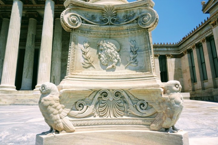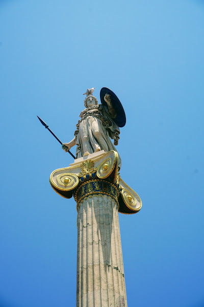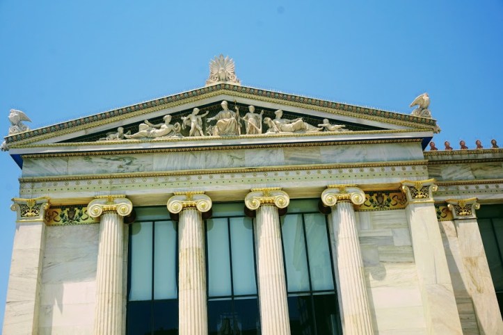Yunanistan gezimin Atina bölümünde, Yunan Parlamentosunun önünde Efzun askerlerinin nöbet değişimini izledikten sonra, Parlamento binasının önündeki Elefterios Venizelos bulvarında, kuzeybatı yönünde ilerledim. Sağ kolda, bir kilise binası olarak tahmin ettiğim Atina Halk Göz hastanesini geçince, Atina Akademi binası çıktı, karşıma.