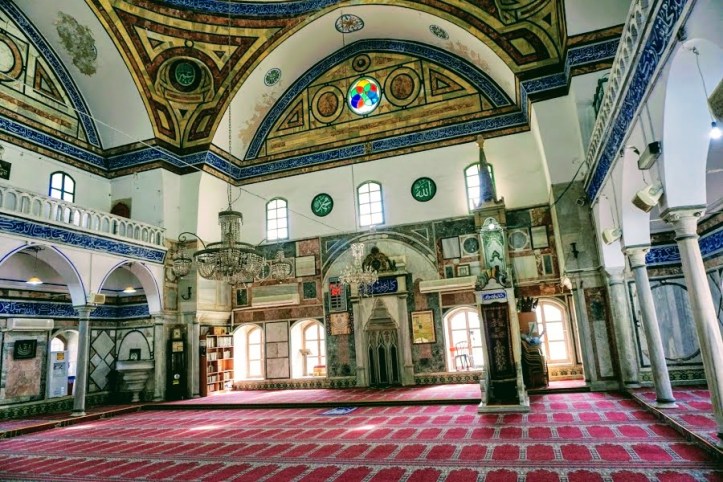 İlk ziyareti, Cezzar Ahmet Paşa camisine yaptım. Cami yüksekte bir yerde. Avlusuna, 14-15 basamaklı bir merdivenle giriliyor. Merdivenin sağında, Sultan Abdulhamid’in yaptırdığı silindirik formda bir çeşme (sebil) bulunuyor. Avluda, bir şadırvan ve Cezzar Ahmet Paşa’nın mezarı bulunan bakımsız bir bina yer almış. Cami kübik formda olup, üstündeki yeşil kubbe, beyaz renkli duvar üzerine oturtulmuş. Cami içinde sağlı ve sollu revak bölümünün üstü kadınlara ayrılmış. Bir minaresi var ve 124 basamaklı bir merdivenle çıkılıyormuş.