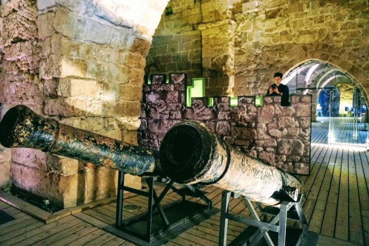 Cezzar Ahmet Paşa camiinin batı bitişiğinde bulunan Akkâ kalesine bir avludan geçerek girdim. Kale duvarları ve surların yanı sıra, kalenin içi ve yeraltındaki galerileriyle geniş bir alana yayılmış. Girişte 1200 m2 lik bir avlu bulunuyor. Kalenin bedenini, yeraltındaki fil ayakları tutuyor.. Dar ve geniş galerilerde içme suyu temin eden sarnıçlar ve su kanalları bulunuyor. Kalenin altı bir labirent gibi. Mahfellerden biri, hapishaneymiş. Ayrıca, İngiliz döneminde, kalenin tamamı hapishane olarak kullanılmış. Haçlılar döneminde Saint Jean şövalyeleri, Kudüs’ten sonra Akkâ’yı merkez seçmişler ve 1191-1291 tarihleri arasında burada yaşamışlar. Kale içinde Hospitalier hisarı (Hospitalier Fortress) bölümünde kalıyorlarmış. Önceden, Kudüs krallığı kurulduğunda hastabakıcılık görevi gören ve Papalık tarafından bir tarikat olarak kabul edilen bu grup, 1120 yılından itibaren ,kendilerini askerleştirmeye başlamışlar ve Hristiyanların Kudüs’e hac görevlerini yerine getirmek için, çıktıkları yolculuğu güvence altına alma görevini edinmişler. Akkâ kalesini merkez seçen Hospitalier ya da Aziz John (St. John veya St. Jean) tarikatı şövalyeleri, daha sonra Rodos ve Malta şövalyeleri olarak da biliniyorlar. İleri yıllarda, Osmanlı, bu şövalyelerle Rodos’ta ve Malta’da mücadele etmiş. Hospitalier hisarının altında, o tarihte kullanılan toplar ve gülleler sergileniyor. Buradaki mahfellerden biri, müze olarak düzenlenmiş. Kazılar sırasında bulunan eserler, burada bulunuyor.