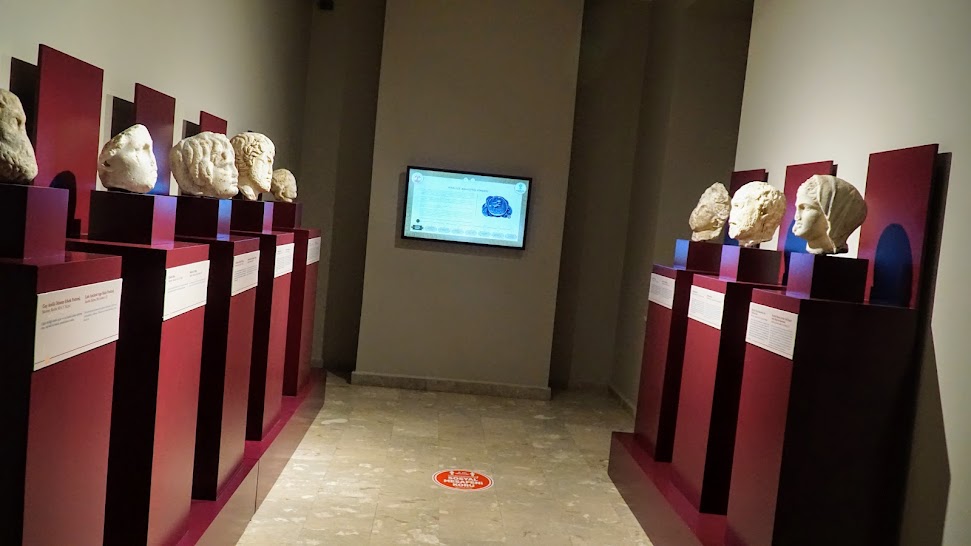 Bundan sonraki salon yörede çıkarılan heykellere ayrılmış. Çok sayıda erkek ve kadın heykeli sergileniyor bu salonda. Sergilenen eserlerin en önemlilerinden biri, Roma imparatoru Hadrianus’un mermerden zırhlı torsosu (gövde) bulunmaktadır. Göğüs bölümünde, Truva’nın baş tanrıçası Pallas Athena’ya (Titan’ı öldürdüğü için Pallas adı verilmiş) Zafer tanrıçasının (Nike) taç giydirmesi betimlenmiş. Bu işleme, Aenas’ın Truva’dan kaçarak Roma’yı kurduğu (Roma ve Grek dünyasını birleştirmek de amaçlanmaktadır) ve Roma’nın zaferlerinin devam edeceğini anlatmaktadır. Hemen altında, Torso’nun karın bölgesindeki işlemede, dişi kurt Lupus’un, Romus ve Romulus kardeşleri emzirdiği görülmektedir. Bu da, Roma’nın kuruluş mitine işaret etmektedir.