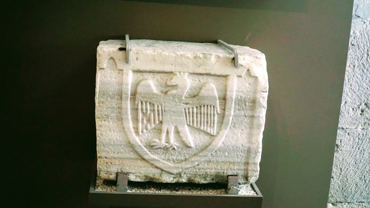 Koridorda; kilise korkulukları (parapet) ile Amasra kalesi içinde Cenevizli ailelere ait armalar yer alıyor.