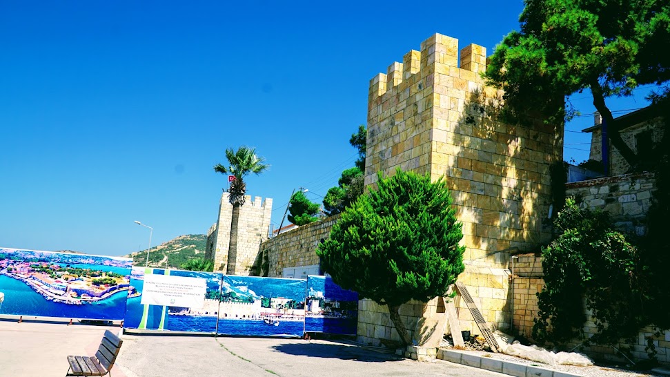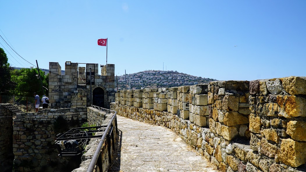Yarımadanın üzerinde, deniz kıyısında Beşkapılar da denilen Foça kalesi bulunmaktadır. Kalenin 11. veya 12. yüzyılda yapıldığı tahmin ediliyor. Bizanslılardan alan Cenevizliler, kaleyi yeniden inşa etmişler. 1455 yılında Osmanlıların eline geçmiş. 1538 ve 1539 yıllarında yeni surlar ekleyerek kaleyi genişletmişler. Foça kalesinin restorasyonu İzmir Büyükşehir Belediyesi tarafından finanse ediliyor. Geçmişteki restorasyonlarda birleştirici malzeme olarak çimento kullanılmış. Bu uygulama kale bedenindeki taşları eritmeye başlamış. Şimdiki restorasyonda orijinal malzeme olarak Bizans dönemi için toprak, Ceneviz dönemi için horasan ve Osmanlı dönemi için kireç harcı kullanılıyor. Beşkapılar denilen deniz tarafında kalenin bir kayıkhanesi bulunuyor. Küçük denizi Büyük deniz tarafına bağlayan, Athena tapınağı ve kalenin deniz kıyısından geçen ahşap yol ve köprü yapılmış. Bu gidişimde, köprü onarımı nedeniyle, yol kapalıydı. Yarımada üzerinde restorasyonu devam eden Fatih camii ile Kayalar camii gezilecek yerler arasında. Bir diğer yer Marinanın önünde bulunan Deniz müzesi. Ancak, pandemi nedeniyle kapalı olduğu için gezme olanağı bulamadım.