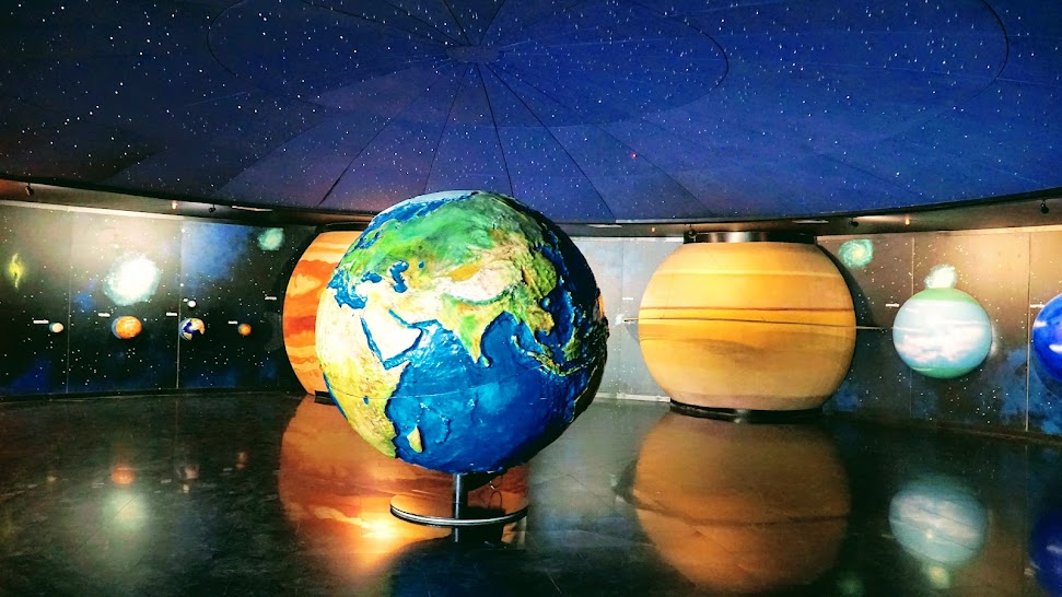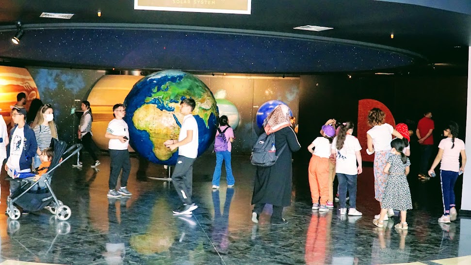 Giriş katında; Güneş sistemindeki, Dünyamız dahil, gezegenler tanıtılıyor. Dünyaya düşmüş meteoritler ve yıldırım taşlarından örnekler sergileniyor. Bu katta bir Planetaryum (kapalıydı), Çocuk Eğitim ve Uygulama alanı ve bir de Hatıra Eşya Satış bölümü vardı. Sağ tarafta, Planetaryum’un yanındaki rampadan birinci kata çıkılıyor.