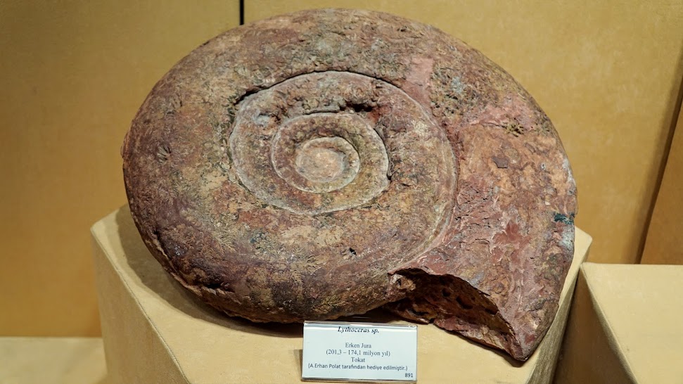 Birinci katta; bitki fosillerinin yanı sıra omurgalı ve omurgasız hayvanlara ait fosiller bulunuyor. Binanın ortasında bir bahçe bölümü hazırlanmış. Burada 140 milyon yıl öncesine ait etobur dinozorlardan Allosaurus fragilis ile 67-65.5 milyon yıl önce yaşamış Tyrannosaurus rex’e (T-Rex) ait kalıbı çıkarılmış maketler sergileniyor. Çevresindeki alanlara; 17-10 milyon yıl öncesine ait hortumlu memeli olan Gomphotherium angustidens ve 280 milyon yıl önce yaşamış bir tatlı su sürüngeni olan Mesosaurus brasiliensis, 193 milyon öncesine ait, Ankara’da bulunmuş dev bir Ammonit, Kahramanmaraş’ta bulunmuş 3500 yıl öncesine ait Elephas maximus asurus (Maraş fili) yerleştirilmiş.