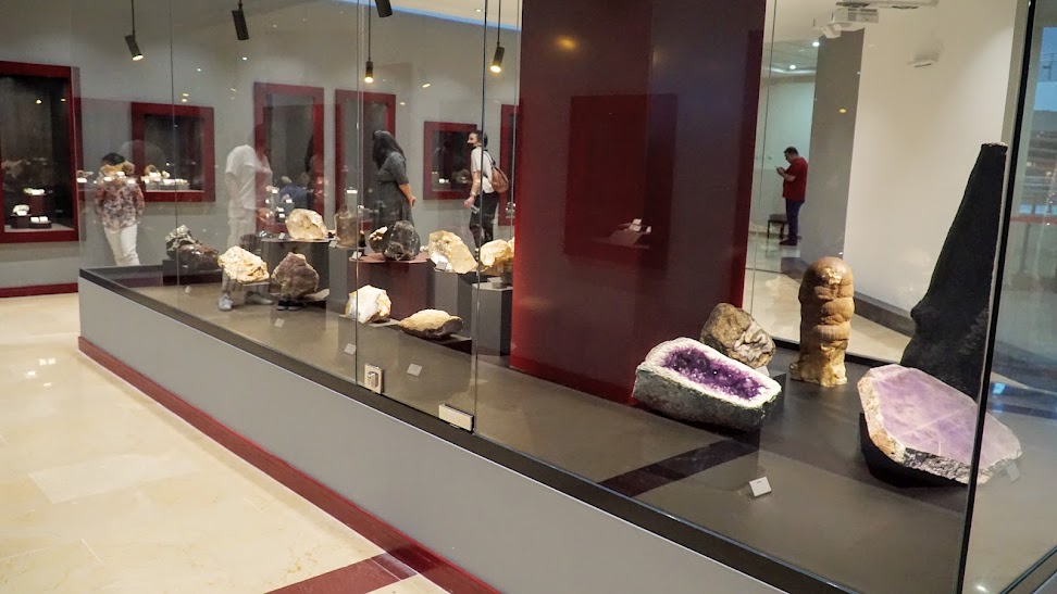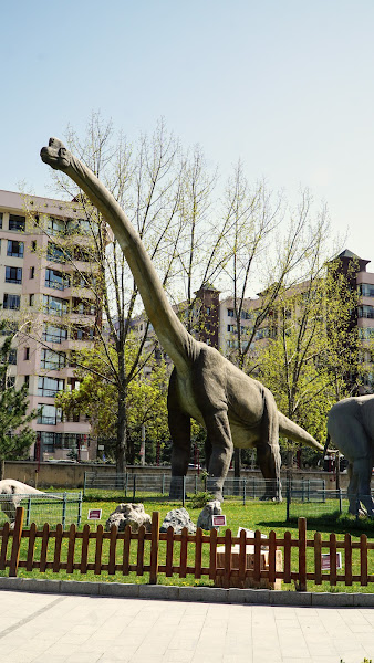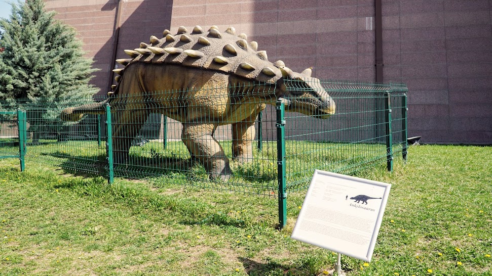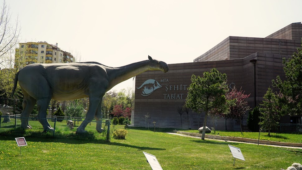 Müze binası bahçesine; Brontonsaurus, Stegosaurus, Tyrannosaurus (T-Rex), Oviraptor, Ankylosaurus, Triceratops adlı dinozor heykellerinin arasına malahit, pirit, manyetit, traverten, kolemanit, obsidyen gibi mineraller yerleştirilmiş.