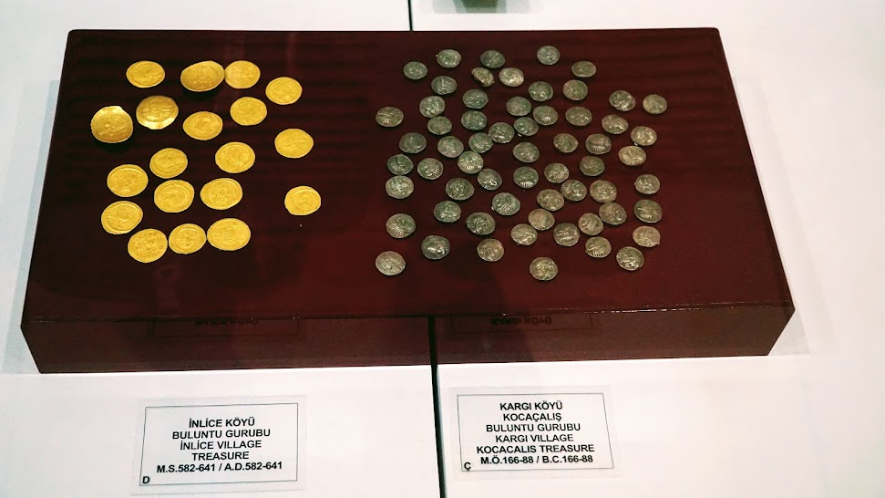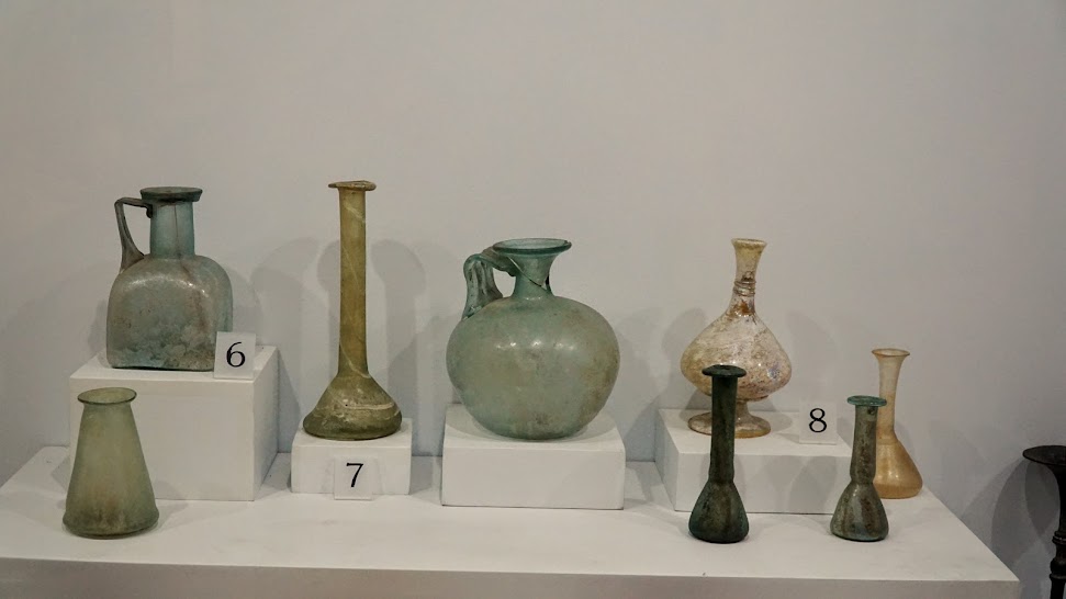Ayrıca; altın takılar (küpe, kolye, taç v.s.), fibulalar (çengelli iğne), cam şişeler de vitrinlerde yerini almış.