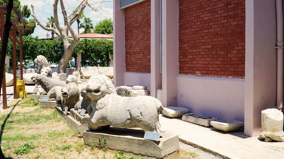 Müzenin bahçesi, bir açık hava müzesi olarak düzenlenmiş. Bu alanda lahitler, üzerinde aslan heykeli bulunan lahit kapakları, sütun başlıkları, pithoslar, zeytin öğütme taşları, frizler, mezar stelleri sergileniyor.