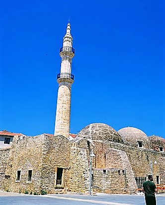 Meydanın biraz yukarısında, Alaçatı sokağının üzerinde Horasani Ali Baba tekkesi ve sokağın hemen arkasında da Alaçatı’dan göç etmiş bir Rum’a ait bir kahve bulunuyor. Şimdi torunu işletiyor. Giriş kapısının karşısındaki duvarı kaplayan büyütülmüş bir fotoğraf var. Kahveci ile kısa bir sohbette, Türkiye’den geldiğimi söyleyince, duvardaki fotoğrafa gitti ve İzmir limanında, kendilerini Girit’e götürecek geminin önünde, toplu halde çekilmiş mübadillerin arasında üçüncü sırada bulunan bir kişiyi işaret ederek ”bu benim dedem ve bu kahvenin kurucusu” dedi.