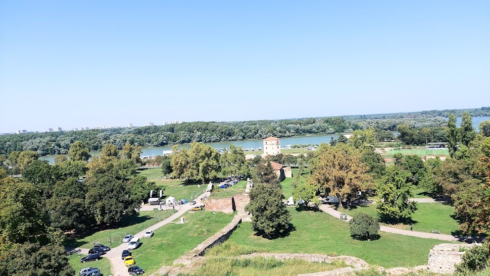 Batıda yer alan iç surlara doğru yöneldik ve üstüne çıktık. Sava ve Tuna ırmakları ve birleştikleri yerdeki Büyük Savaş Adası, bütün güzelliği ile karşımızda. Sava kıyısındaki dış surlar yıkılmış. Geride beyaz kubbeli Osmanlı hamamı ve Nebojsa gözetleme kulesi kalmış.