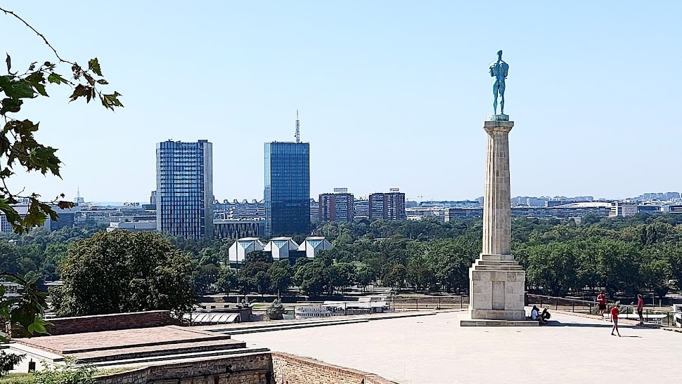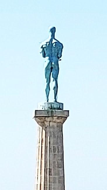 Kalenin güneybatısında I.Balkan savaşında Osmanlıya karşı kazanılan zaferin anısına bir kaide ve sütun üzerine yerleştirilmiş heykeltraş İvan Mestroviç tarafından yapılan Zafer anıtı (Pobednik ya da Victory), yüzünü Sava ırmağına dönmüş. Sağ elindeki kılıcın ucu yere dayanmakla savaş istemediğini, sol elinde tuttuğu güvercinle de barış istediğini ifade ediyor. Hikâye doğru ise, çıplak erkek olan heykeli, Terazi (Terazije) meydanına yerleştirmek istediklerinde, Belgrad kadınları bu bizim erkeklerimize benzemiyor, başka bir yere yerleştirin diye itiraz etmişler. Heykel de kaledeki bugünkü yerini almış. Bulunduğum pozisyonda, anıtın fotoğrafını arkadan çekebildim.