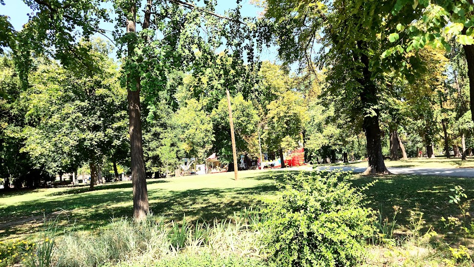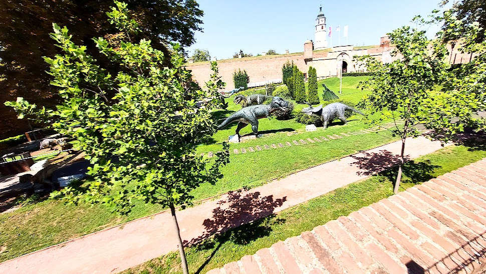 Kapının dışında dinozor maketlerinin sergilendiği bölümden ve çocuk oyun alanlarının arasından geçtikten sonra, Kalemegdan’ın ağaçlıklı yeşil alanına ulaştım.