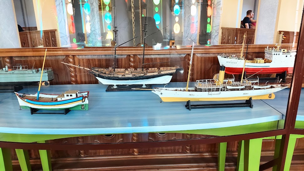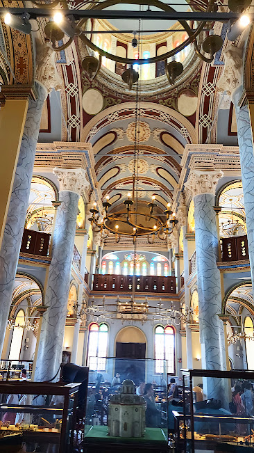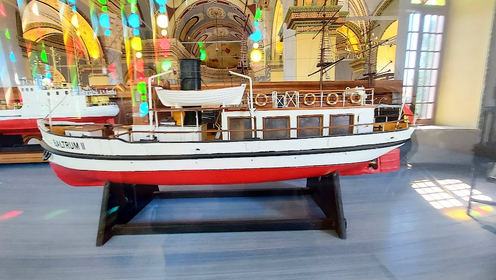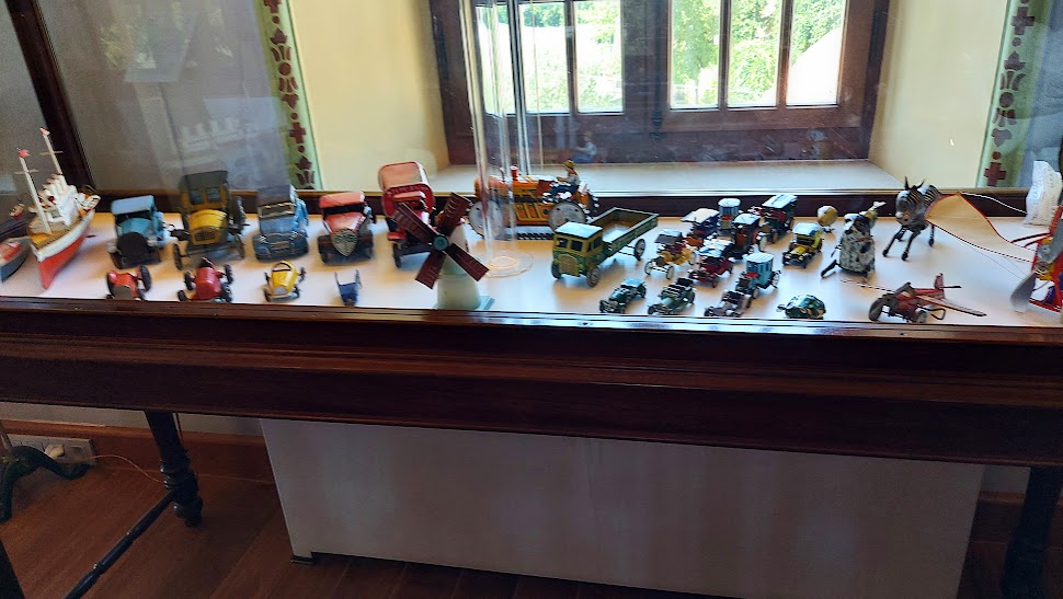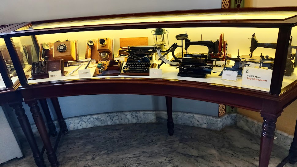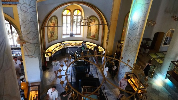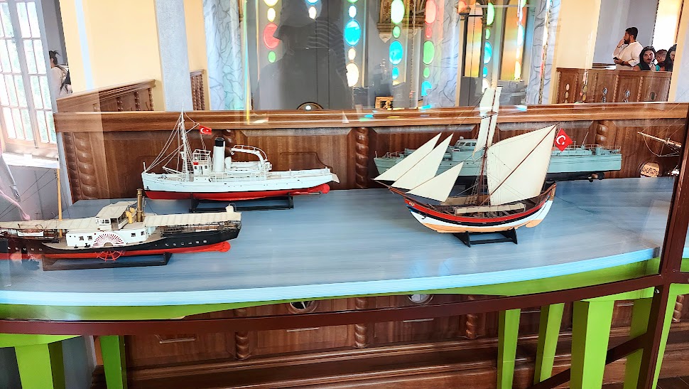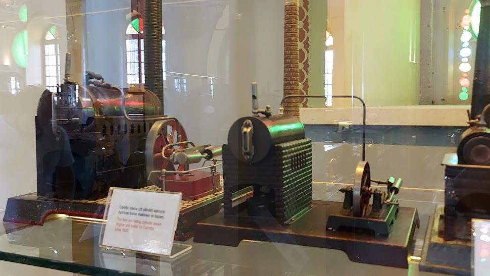 Kilisenin giriş ve balkon katlarında, İstanbul ve Ankara’daki Rahmi M. Koç müzelerinin envanterlerine kayıtlı çeşitli dönemlere ait oyuncak motorlu ve motorsuz arabalar, deniz teknelerinin motorları, dalgıç takımları, savaş ve yolcu gemi maketleri, deniz motorları, daktilo ve dikiş makinaları, 1910 yılında Baby adıyla Dijon’da üretilmiş bir Fransız otomobili, buhar makinaları, yelkenli maketleri, oyuncak lokomotif ve vagonlar, uskur ve dümenler sergileniyor.