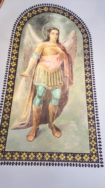 Apsisin tam ortasında, bu bölümü aydınlatan benzer iki pencere var. Apsiste pencerenin solunda, neredeyse pencere yüksekliğinde elinde kılıç tutan, zırhlı Başmelek Mikail (Archangel Michael) ve pencerenin sağında Başmelek Cebrail’in (Archangel Gabriel) freskleri bulunuyor.