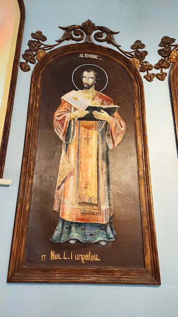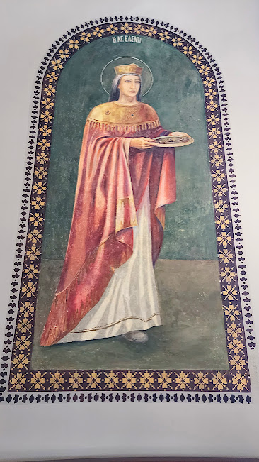 Apsis tarafındaki kuzey ve güney duvarları azizlerin freskleri ve tabloları ile süslenmiş.