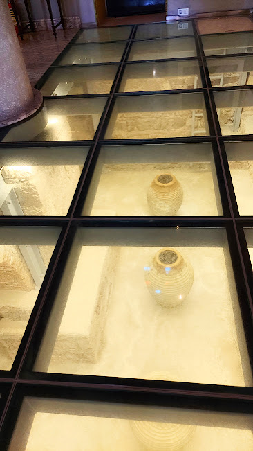 Apsisin hemen önündeki zeminin bir bölümü camla kaplanmış. Buradan ilk kilisenin temelleri görülebiliyor.