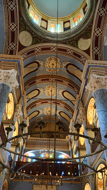 Duvarlarda ve kubbedeki renkli camlardan oluşan pencereler, kilise içinin aydınlatılmasına yardımcı oluyor. Batı duvarında, ana girişin üstündeki üç pencere ile kubbeyi çevreleyen pencereler tamamen renklendirilmiş. Duvarlarda dik pencerelerin üstteki kemerli bölümleri de renklendirilmiş.