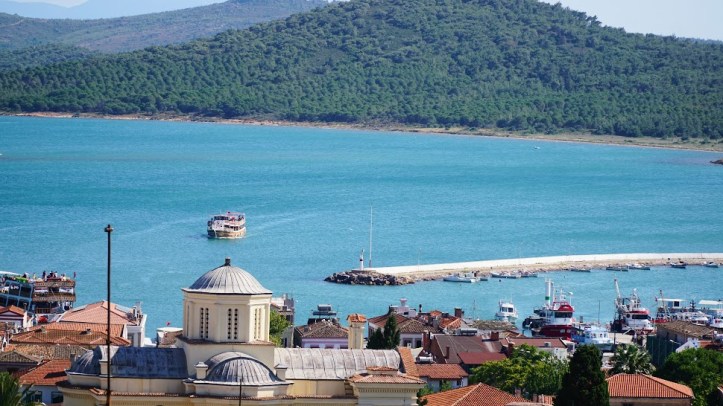 Haziran ayı içinde gezdiğim Taksiyarhis Kilisesi, Cunda adasının girişindeki tepenin Ayvalık tarafına bakan yamacında bulunuyor. Tepede ise, Sevim ve Necdet Kent kitaplığının bulunduğu şapelle yel değirmeni var.