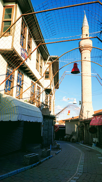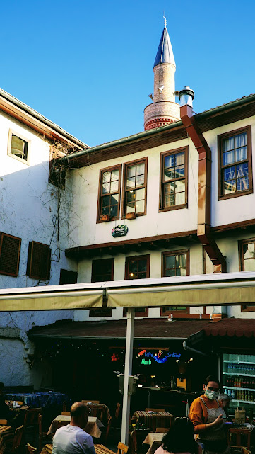 Ne zaman Kale’yi gezmeye gitsem veya buradaki bir etkinliğe katılsam, Pirinç Han’a da uğrarım. Antikacı dostlarla görüşür, vitrinlere göz gezdirir, belki de bir obje satın alırım. Ama mutlaka, Pirinç Han Cafe’de çay eşliğinde gözleme yerim. Pirinç Han, Koyunpazarı sokaktan Kale kapısının da bulunduğu Atpazarı meydanına çıkarken, solda bulunan Ahi Elvan camiinin köşesinden girilen Pirinç sokak üzerinde yer alıyor.