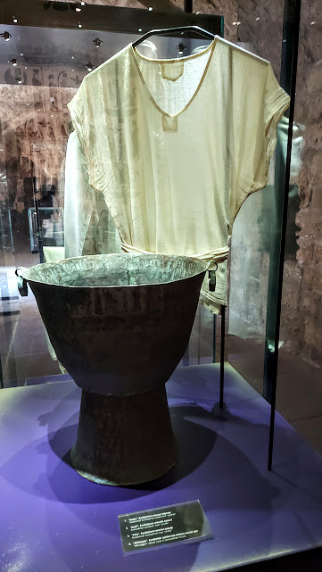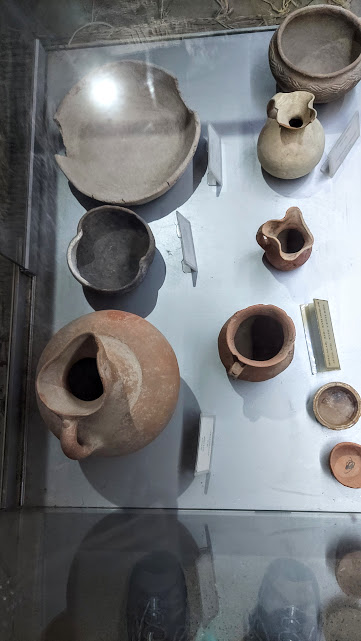 Kazılardan çıkarılan çanak, çömlek ve metal eşyalar sergileniyor.