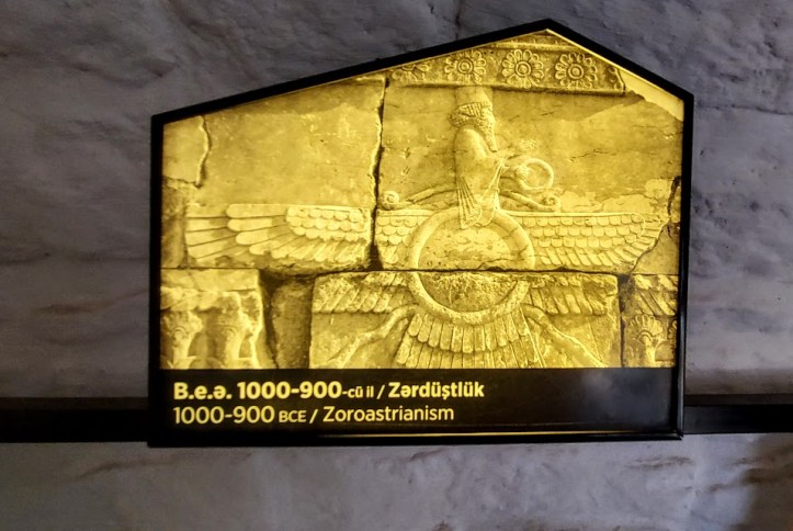 Dünya üzerinde üç adet ateş tapınağı bulunuyor. Biri İran’da Yezd kentinde, ikincisi Hindistan’ın Mumbai (Bombay) kentinde, üçüncüsü de Bakü kentinde ziyaret ettiğim Ateşgâh Mabedi. Ateşgâh Mabedi (Ateşperest tapınağı), Abşeron yarımadasının ortasında, Bakü kentinin 18 km. doğusunda Surahani kasabası sınırları içinde yer alıyor. Bu tapınak; Mecusiler, Hindular ve Sihler tarafından da kullanılmış. Tapınak; doğu-batı arasındaki İpek Yolu adlı ticaret yolu üzerinde bulunmaktadır. Hindistan’dan Avrupa’ya mal götüren tacirlerin uğrak yeridir. Bu nedenle, Hindistan’da da Mecusilik inancını benimseyenler olmuş. O nedenle, Tapınak içinde Hintlilere ait izler bulunuyor. Bölgenin birçok yerinde, doğalgaz çıkışı nedeniyle kendiliğinden yanan doğal ateş bulunuyor. Bu ateşlerin sönmeyeceği düşünülüyor. Tapınak, bu nedenle, 1713 yılında inşa edilmiş. Ateşgâh tapınakları, bir han biçiminde inşa ediliyormuş. Dış avlu sonradan ilave edilmiş. Taşıt araçları, kemerli kapıdan dış avluya girebiliyor. Dış avluya girildiğinde, sol tarafta L şeklinde revaklı bölüm var.