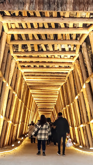 150 m. kadar derinde olan zemine inildiğinde sağa ve sola giden ışıkla aydınlatılmış galeriler var.