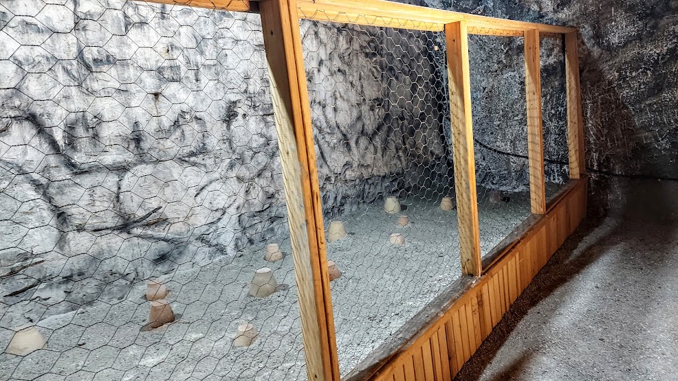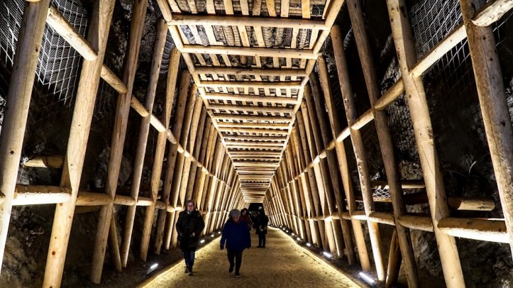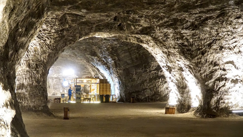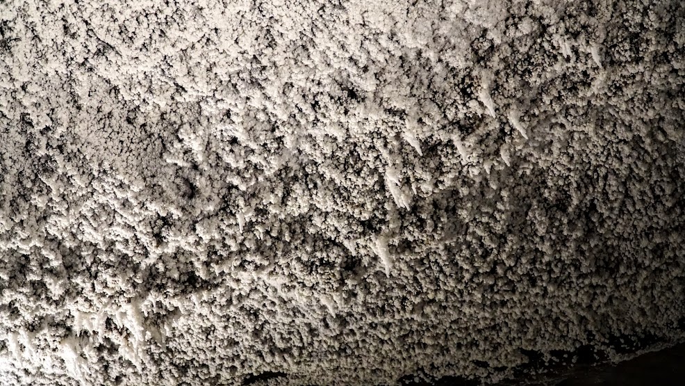 Galerilerin duvar ve tavanları kaya ile karışık tuz katmanlarından oluşuyor.