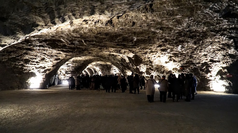 İstasyona indiğimizde bizi Çankırı folklor ekibi karşıladı ve otobüslerle Çankırı Tuz Mağarasına hareket ettik. Halka gezdirilen mağara ile üretim yapılan mağaralar ayrı ve gezilen mağara tüm alanın küçük bir parçası. Üretim yapılan mağaralarda duvardan kesilen tuz blokları büyük kamyonlarla tuz işleme yerine taşınıyor.