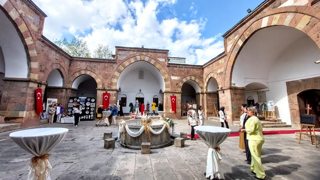 Bu avluda düğünler olurdu, sadece kadınların katıldığı. Avluya girişin sağındaki eyvanın bitişiğinde, köşedeki kemere büyük bir kilim asılarak yapılan perdenin arkasındaki revak bölümünde bulunan keman, cümbüş, klarinet (gırnata) ve darbukadan oluşan çalgıcı grubu, avluda oynayanları görmezlerdi. Asaf’ın davulu (baterisi) da anılarımın arasında yer alıyor. Biz çocuklar, perdeyi aralayarak, kadınların müzik isteklerini çalgıcılara iletirdik. Müziğin başlamasıyla havuzun başı hareketlenir ve kadınlar oynamaya başlarlardı. Medrese binasının köşeleri kesme blok taşlarla desteklenmiş. Duvarlar, kireç harcı kullanılarak moloz taş örgüsü ile yapılmış. Taş duvarın arasına iki sıra, bazı yerlerde üç sıra yassı tuğlalar yerleştirilmiş. Çatıya yakın bölümlerde de yassı tuğlalar dikine konulmuş.