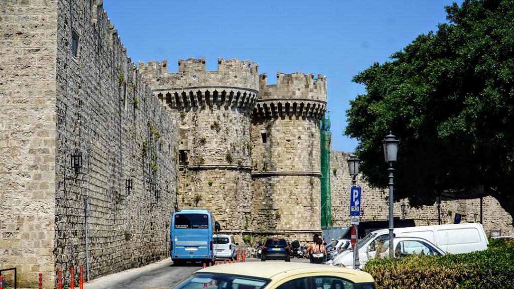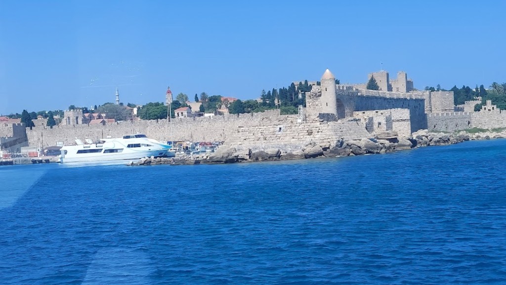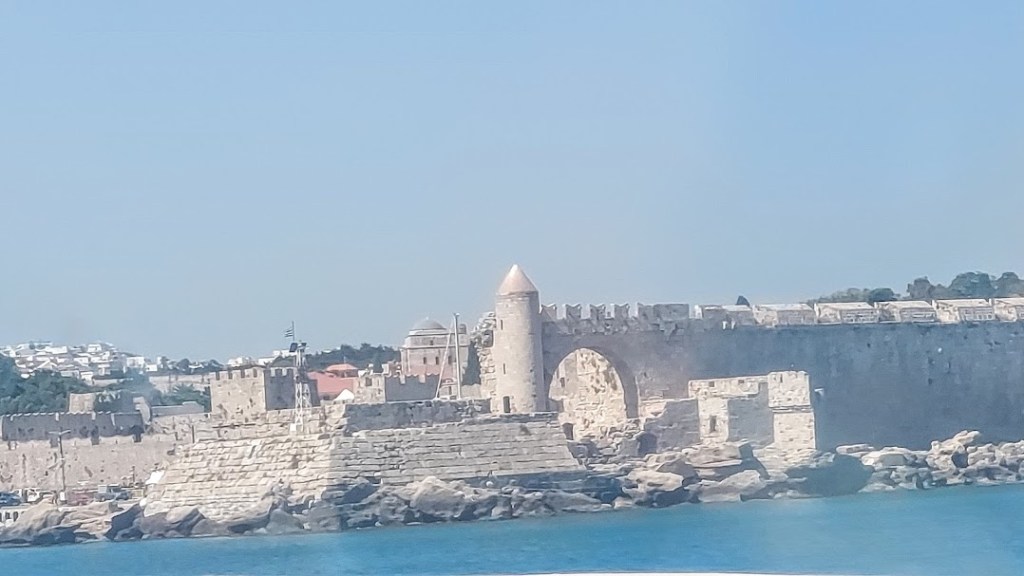 Pasaport polis kontrolünü geçtikten sonra, Liman çıkış kapısının karşısında bulunan Olympic Car Rental firmasından günlüğü 70 € ya ertesi günü Lindos’a gitmek için araba kiraladık. Araç otelimize getirilecekti. Önceden yer ayırttığımız otelimiz Island City Hotel, Adanın kuzey burnuna doğru, Rodos kenti surlarının dışında, ama yürüme mesafesindeydi. Limana bakan surların önünden geçerek otelimize ulaştık. Odalarımıza yerleştikten sonra, Eski Rodos (Old City) kentini gezmek üzere otelden ayrıldık.