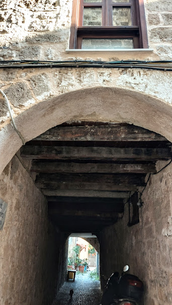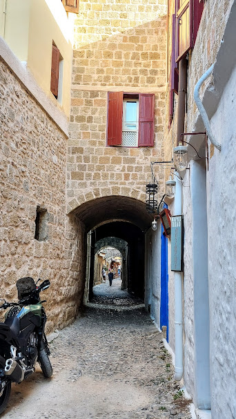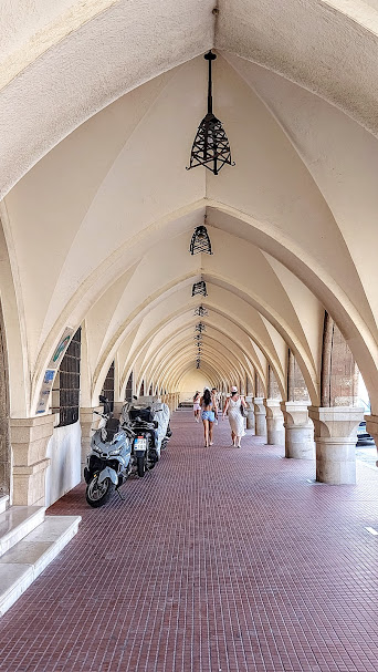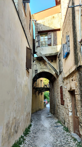 Meydanın bitiminde bir arkaddan geçilerek Dekoratif Sanat Müzesine geliniyor. Rodos eski kentin içinde o kadar çok kemer ve arkad var ki, muhtemelen binaları güçlendirmek, ya da kent savunmasında bina çatılarının üzerinde dolaşabilmek, bir binadan diğerine kolaylıkla geçebilmek için yapılmışlar, diye düşünüyorum. Kenti gezenlere de hoş bir saçak altı sunuyor, bu arkadlar.