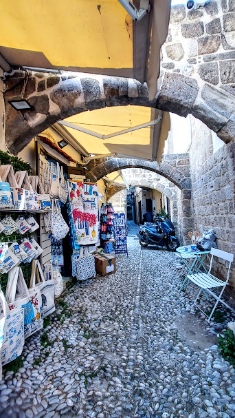 Apellou Sokağına devam ettiğimizde, sağ tarafta Rodos Şövalyeleri Sokağının (Ippoton Sokağı) başlangıcı ve köşede de Rodos Arkeoloji Müzesi bulunuyor.
