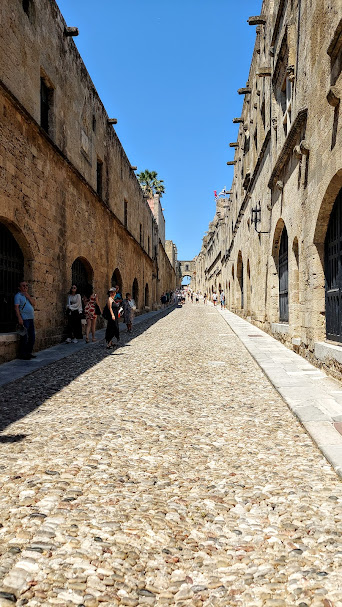 Cami gezilerimden sonra, üçüncü gün Rodos Şövalyeleri (Ippoton-Street of Knights) Sokağına girdim. Bu sokak yaklaşık 200 m. uzunluğunda olup, Büyük Üstad (Grand Master) Sarayında sonlanıyor. Zemini taş döşeli bu sokak, aslında Rodos Akropolü’ne giden yolmuş. (Rodos Akropolü’nü ayrı bir yazımda anlatacağım). Kentin tahkimatı ile birlikte kent içinde bir sokak haline gelmiş. Kentin bütün binalarında olduğu gibi, bu sokak üstündeki binalar da taştan yapılmış ve gotik mimari özellikler gösteriyor.