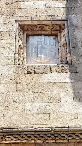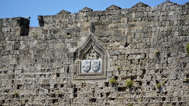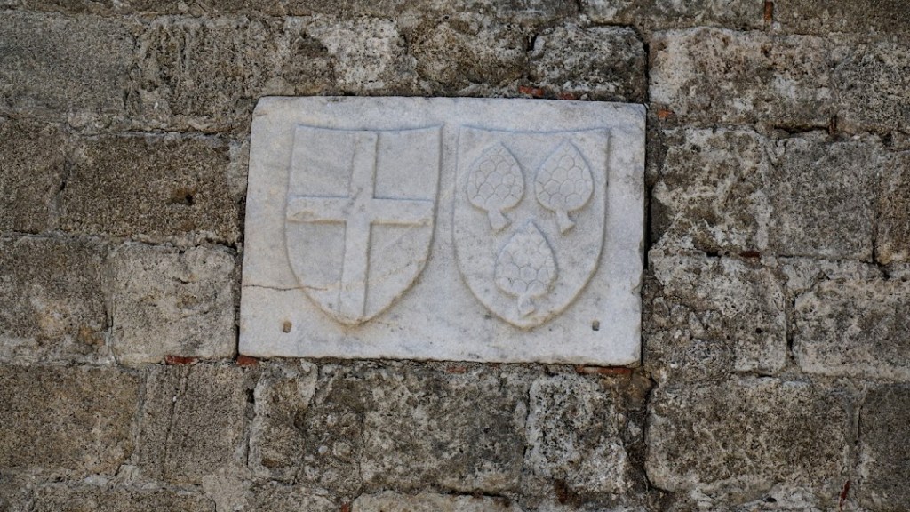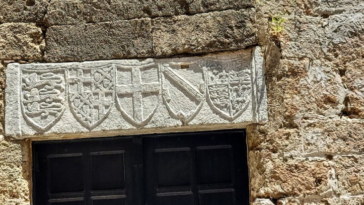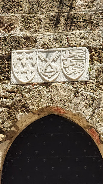 Sekiz köşeli haç, Hospitalier (St. John) Tarikat Şövalyelerinin ortak armaları. Bu arma, kentin çeşitli yerlerinde de görülüyor. Malta’ya geçtiklerinde de aynı armayı kullanmaya devam etmişler.
