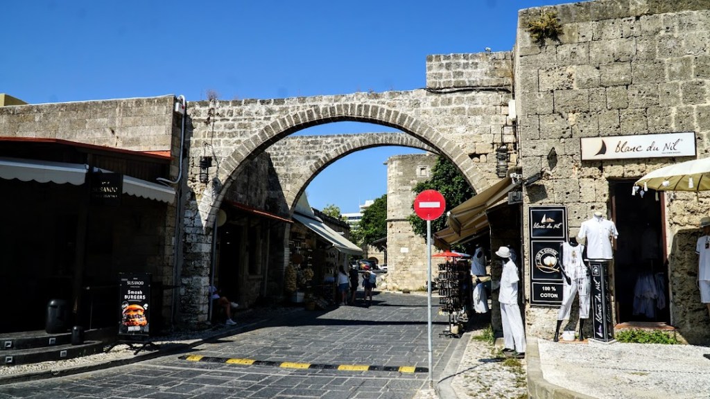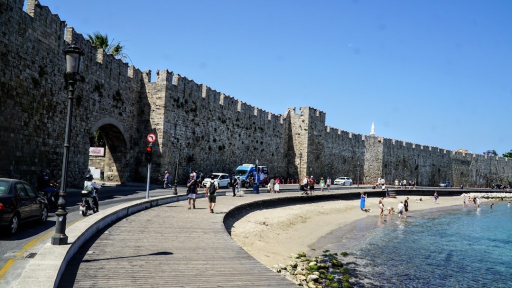 Eski kente Mandraki (antik) limanı tarafında bulunan Eleftherias (Özgürlük-Liberty) kapısından girdim. Kapıya gelmeden, surların önündeki büyük hendeğin üzerindeki bir köprüden geçiliyor.
