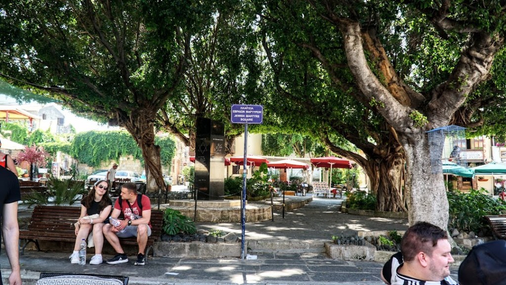 Bundan sonra, devam eden Aristoteles Sokağı üzerinde Evreon Martyron (Yahudi Şehitleri) Meydanı geliyor. Meydan, Ficus ağaçların gölgesindeki bir parkla bütünleşmiş. Parka, siyah mermerden, 1944 yılı Nazi işgalinde öldürülen 1604 Yahudinin anısına, bir anıt dikilmiş.