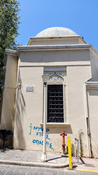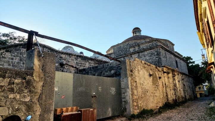 Gecelediğim Island City Hotel’in yan tarafında bulunan Ethanarchou Makariou sokağının Plotarchou Plessa sokağı ile kesiştiği köşede, her gün önünden geçtiğim, yine Osmanlı mimari özellikleri taşıyan, iki cephesinde kemerli ve demir kafesle kapatılmış pencereleri olan, giriş kapısının üzeri sivriltilmiş kemerle hareketlilik kazandırılmış bir kubbeli bina yer alıyor. Maalesef, bu bina hakkında bir bilgi bulamadım.