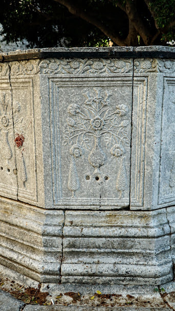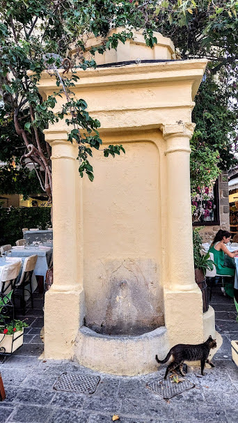 Osmanlı, kent içinde, çeşmeleri de unutmamış. Eleftheras kapısından Sokratus sokağına girdikten sonra, sola döndüğümde (doğu yönünde) az ileride sol kolda bir çeşme ile karşılaştım. Dört sütun üstünde yükselen kubbesi ile gövdesi dolu olan bir çeşme. Muhtemelen gövde su depolamayı da içeriyordu. Dört yüzünde musluk ve yalakları olan çeşme kentin su şebekesine bağlı olarak hizmet veriyor. Benzer bir çeşmeye Sinagog yakınlarındaki bir sokak kavşağında rastladım. Bunun da dört cephesinde musluk ve yalak vardı. Diğerinden farklı olarak, cephesine yapılan kemerli bir niş ile hareketlilik kazandırılmış. Üçüncü çeşme, Dimokrates caddesi üzerinde, eski kentin Aziz George kapısının girişinde bulunuyor. Dört pabuç üzerinde dört sütunla yükselen çeşme düz damlı. Dört cephesi kemerli nişlerle süslenmiş ve yine dört cephesinde mermerden küçük yalaklar bulunuyor. Yapılan değişiklikle üç cephesine pencere ve bir cephesine kapı eklenerek turizm ofisi (Tourism Information Office) haline getirilmiş.