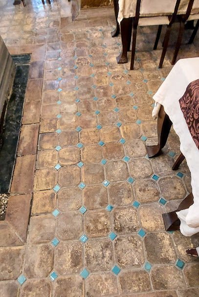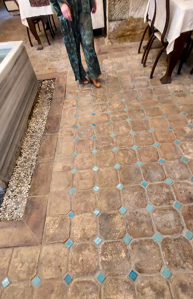 Havuzun çevresindeki zeminde belirgin olarak görülen, döşeme taşlarının köşesinde yer alan turkuaz renkli seramikler çocukluğumda da vardı.