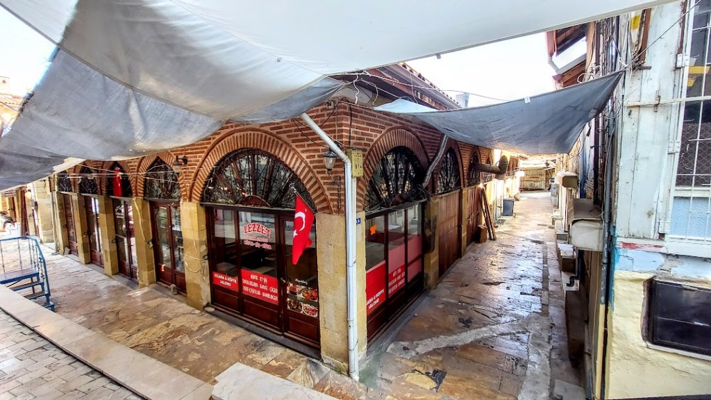 Paşa Camii’nin merdivenlerine bakan köşedeki dükkân (bugün Mertat ürünlerinin satıldığı yer) Talât Âşık ve oğlu Halis Âşık’ın ”Yerli Dokumalar” adıyla çarşaf, peştemal ve iplik satışıyaptığı dükkândı. Bugün Bedesten restoran olarak işletiliyor. Spesiyalitesi Topuz Kebabı. Bir savaş silahı olan üzeri çivili 200 derece ısıtılmış bir topuz (gürz) üzerine asılı etler, üzerine sos dökülerek servis ediliyor. Bir kaç kez, Merzifon dışından gelen dostlarıma Topuz Kebabı ikram etme imkânım oldu.